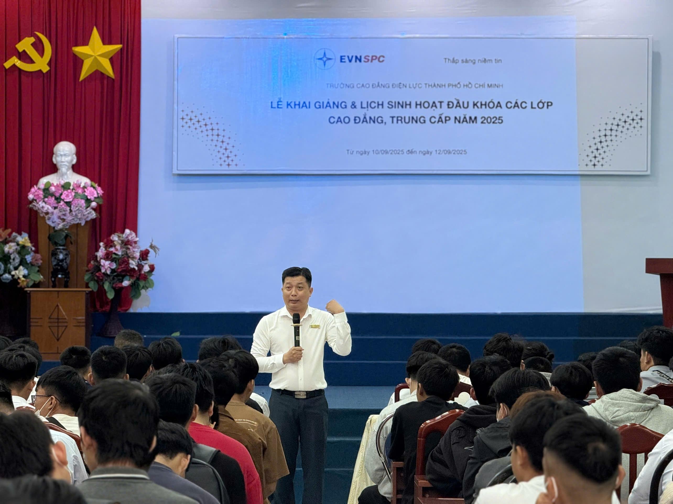 Trong không khí hân hoan đầu năm học mới, Trường Cao đẳng Điện lực Thành phố Hồ Chí Minh đã tổ chức buổi sinh hoạt đầu khóa dành cho sinh viên khóa 2025 từ ngày 10 đến 12/9/2025 tại Hội trường B. Chương trình diễn ra trong ba ngày, với nhiều nội dung phong phú và thiết thực giúp tân sinh viên nhanh chóng hòa nhập với môi trường học tập mới.